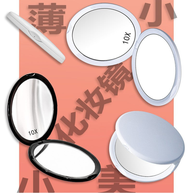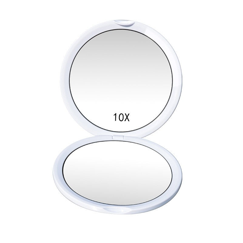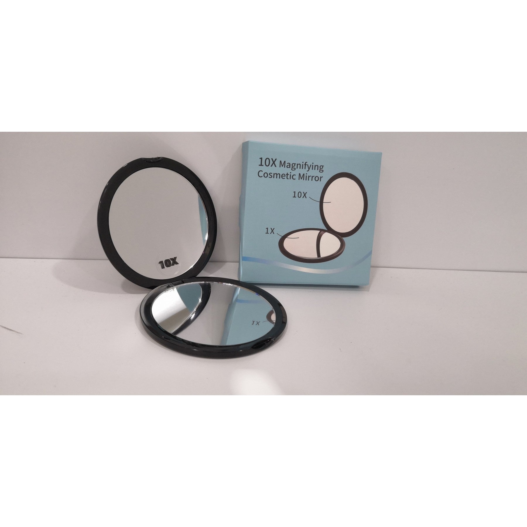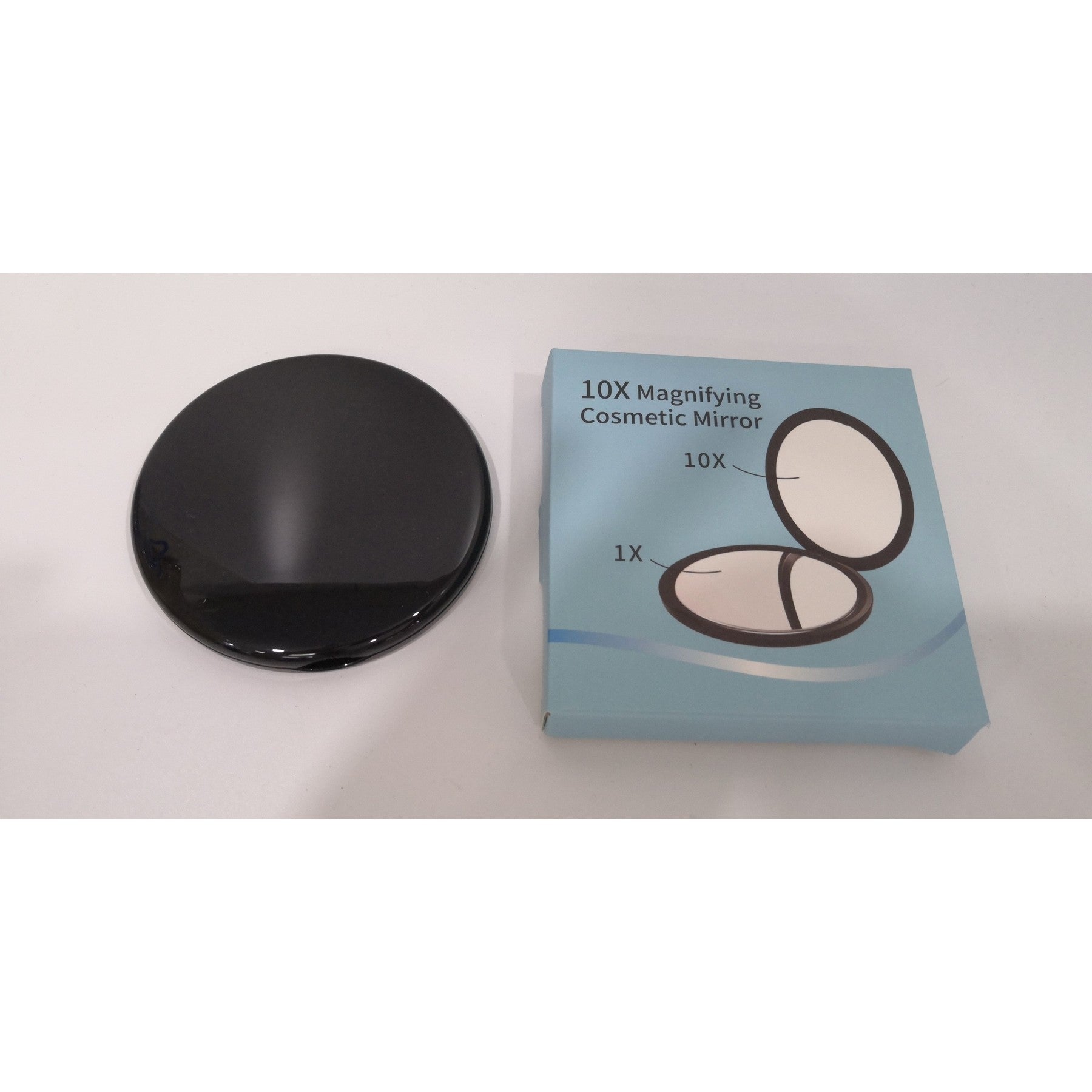 This Mirror is made of ECO friendly thickened ABS plastic. which is beautiful in shape, light in weight and safe to use. It is suitable for everyone who likes beauty and personal care. Mirror is very easy to pack and carry, is the perfect addition to be used as a hand mirror, tabletop mirror, travel mirror. It has a 2-sided mirror that one side is the1 time and the other side is 10 times magnifying mirror. 3.94" Diameter x 0.59" Thick
