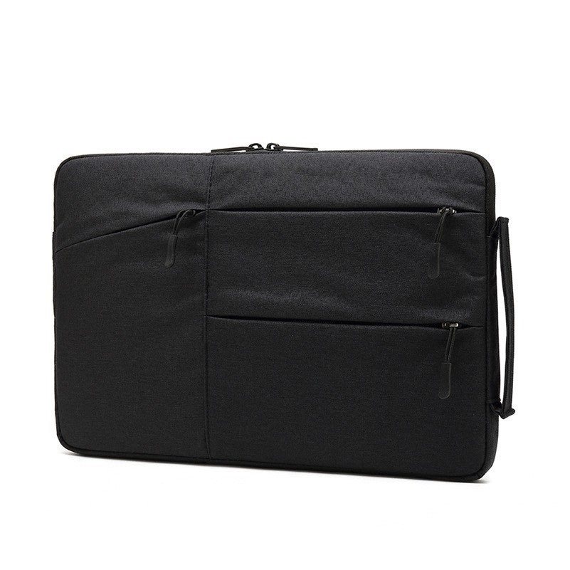 Made with Waterproof Oxford Cloth and Plush-Filled inside. Four Compartments, Large compartment with Zipper and Plush-Filled inside for laptop, Front 3 Pockets Compartment for laptop mouse, chargers, phones and so on. Wrist Strap right side of the bag.
