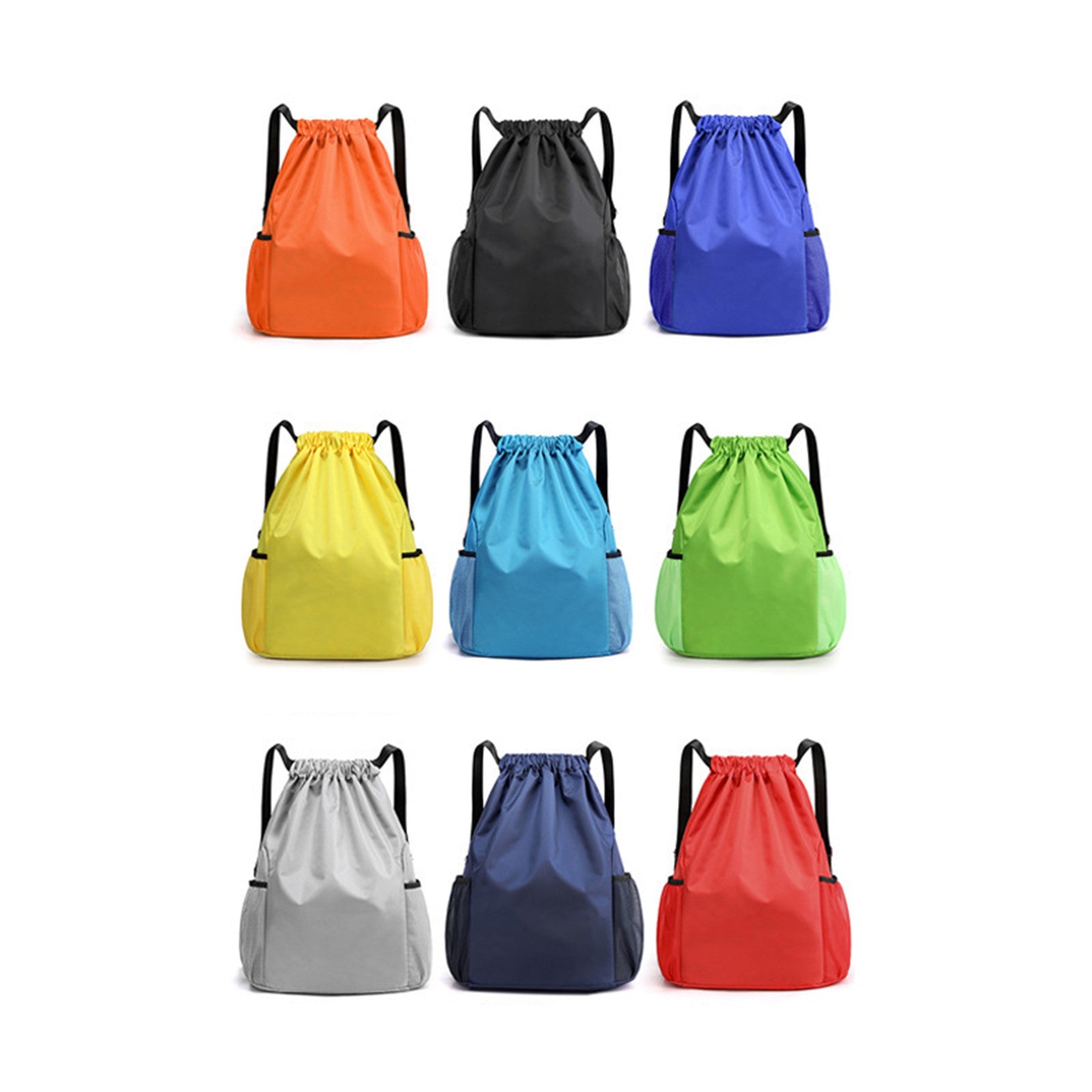 17 x 12 inch Drawstring Backpack with Mesh Side Pockets, Large Capacity Sports Bags Waterproof Bag
