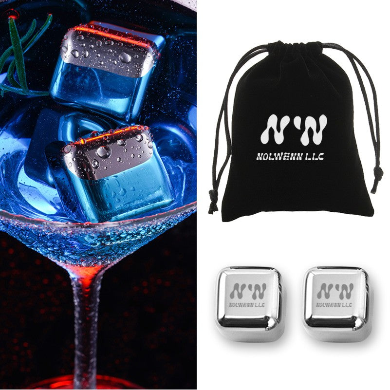 2 pcs Stainless Steel Wine Ice Cube W/ Velvet String Bag