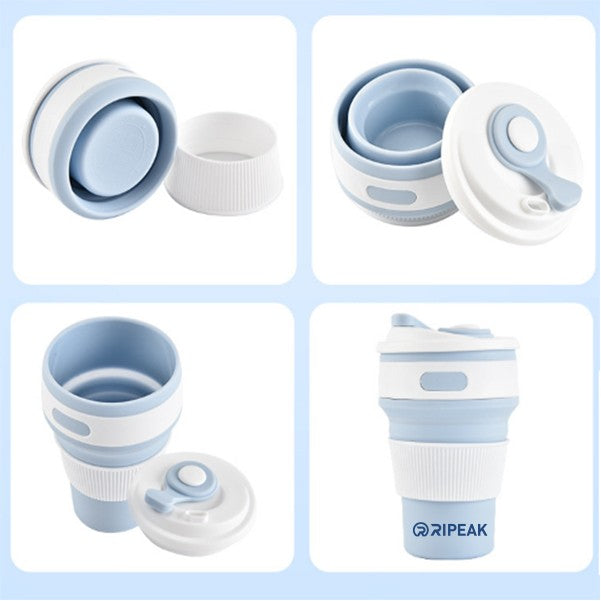 Instructions for use: 1. Remove the anti-scalding ring under the cup 2. Pull out the upper plug on the lid, then remove the cover. 3. Anti-scalding ring and tight cup 4. Use together to use Collapsible cup made from 100% food-grade premium silicone. BPA free, non-toxic, healthy, without any odor, wear and falling resistant. Natural insulator with cup sleeve keeps hands cool while drinking hot water. Sturdy locked lid and leak-proof design have avoided milk spilling while reading.Unbreakable Cup. Complies with FDA, Prop 65.