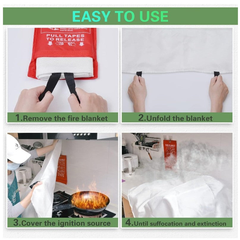 These fire blanket fire suppression blanket for Home made from 100% glass fiber. Great protection to reduce burning injuries. Ideal rescue: This fire blanket for home is ideal for rescue in the kitchen, fireplace, grill, car, camping, office, etc.... Safe fire blankets for people to use. Easily be stored in the house or carried around. Close size: 7.48'' W X 12.61'' H X 0.55'' D, Open size:. 47.28" Diameter