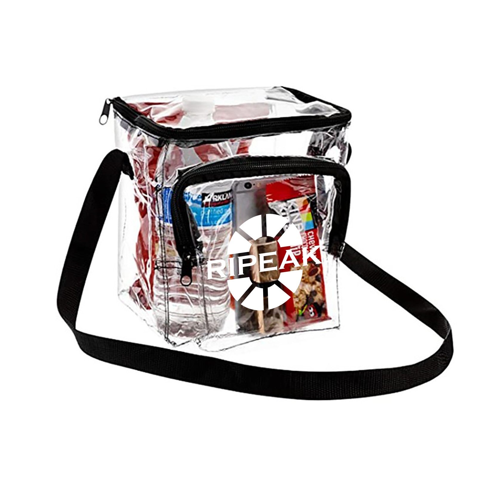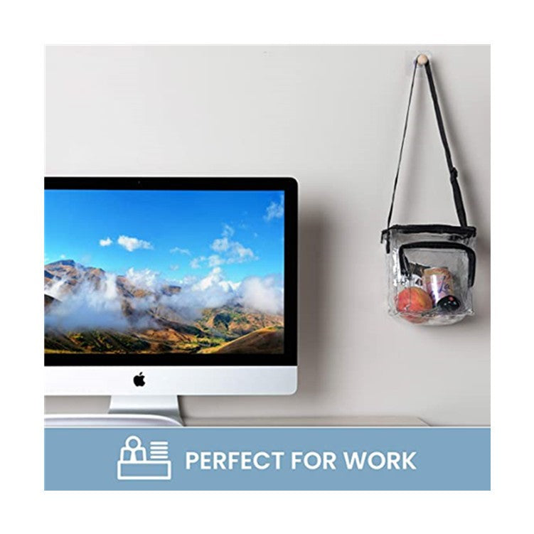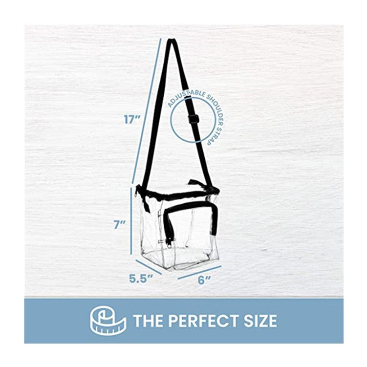 Material: Transparent PVC Portable and durable PVC clear bag with Sturdy quality zipper. Lightweight and Large capacity. Transparent design allows you to see what is stored and where it is. Easily find what you are looking for without wasting time. Fashion product. 34'' L ( strap ). Complies with Prop65