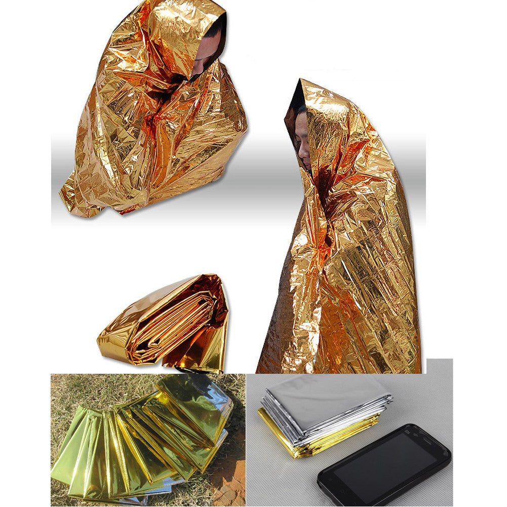 This Emergency Blanket is an ultra-compact 2.95" by 4.53" by 0.59", but opens up to a generous size of approximately 55.16" by 82.74". Most commonly used for emergency first aid and wilderness survival, these little wonders are capable of a multitude of other uses making them perfect for 72 hour and first aid kits! The blankets are a metalized plastic sheet, which can help prevent or treat hypothermia, act as a windbreaker, and can be worn as an emergency waterproof wrap. 82 3/4" L x 55 5/32" W