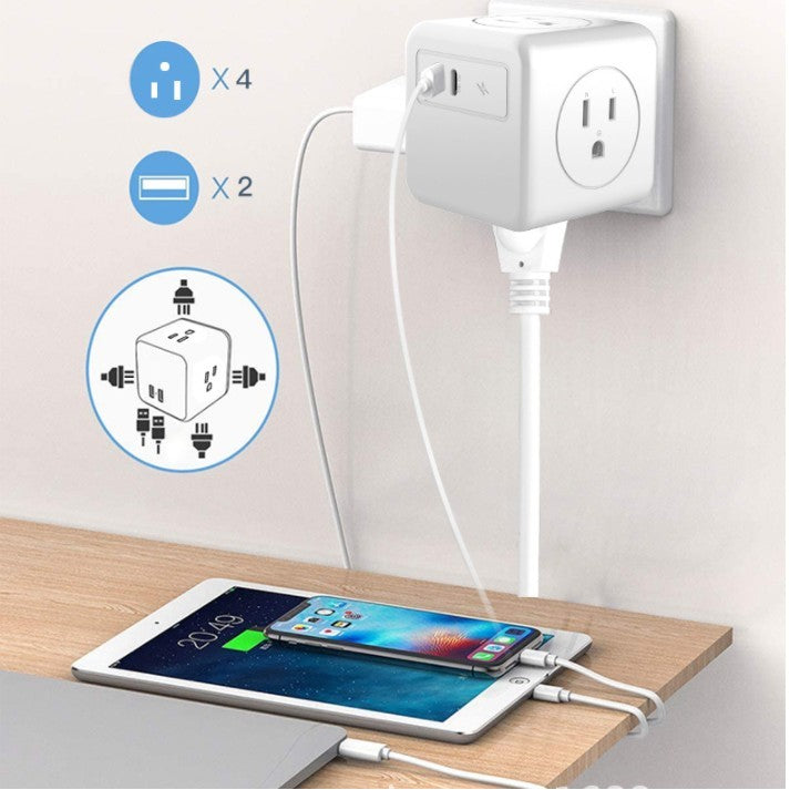 FCC 4 Jacks Cube Wall Charger W/A USB-PD