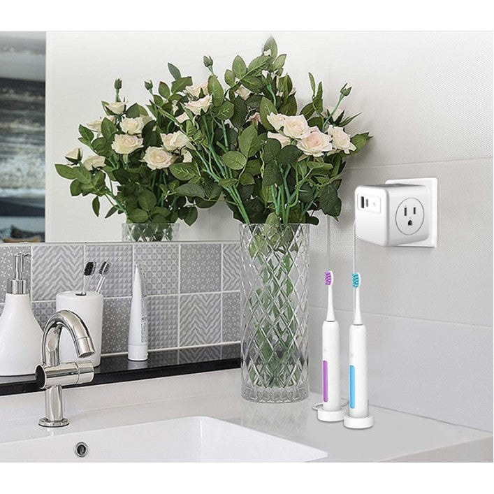 US Dual USB chargers and 4AC-in Jack, made of Pure PC fireproof material. We can provide FCC report. Large printing area, convenient for publicity. 2USB Output: DC 5V 2.1A. One is Type C USB fast charge( PD 18W). Complies with FCC, UL.