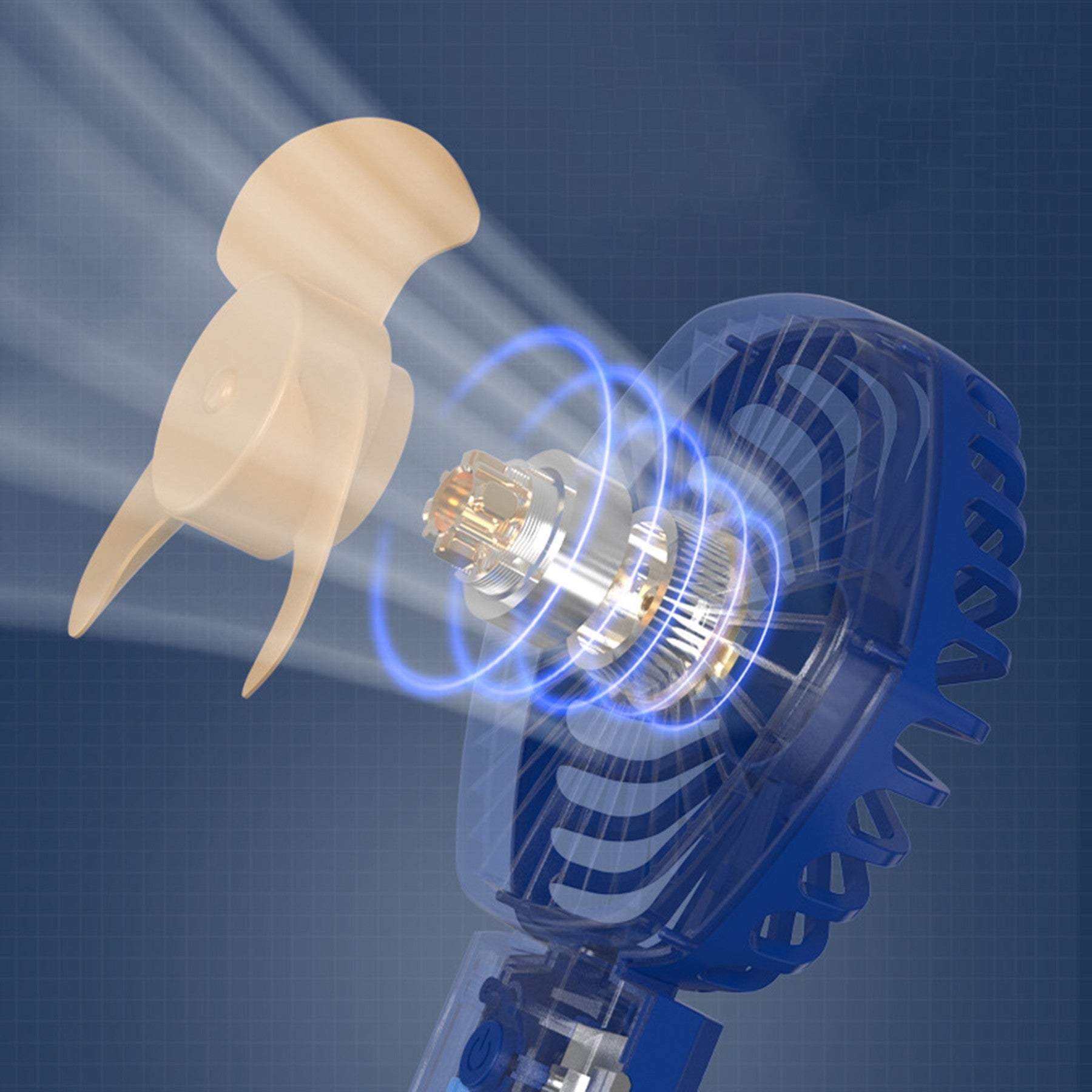 The battery handheld fan has 3 adjustable speeds which can be switched easily by pressing the button on the handle. Included a removable Base with non-slip pad on the bottom, the USB fan can be used as a table desk fan when you are working or makeup. Mini in size, versatile in applications. Complies with FCC, Prop 65. 7.289" L x 3.782" W x 1.22" H