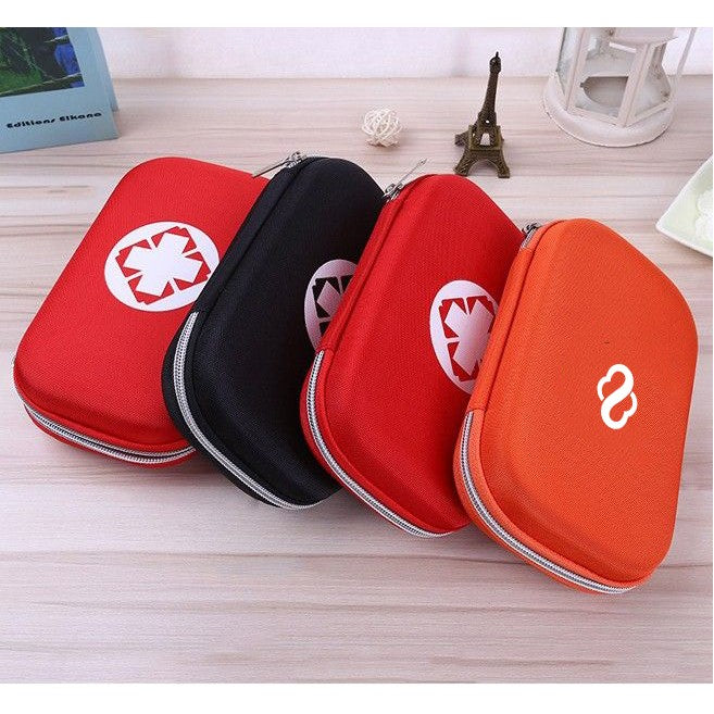 This first aid kit is just a container for medical supplies medicine, not including any medicine or any medical supplies. It is made of high quality durable EVA material. Inner with soft material, net interlayer and a few pockets to use and put things. You can arrange items into a way that you would feel much more comfortable with. There is zipper in the middle. Perfect storage for the medical or other kits. It is easy to carry and protect the kits. 8.27" L x 5.12" W x 2.17" H