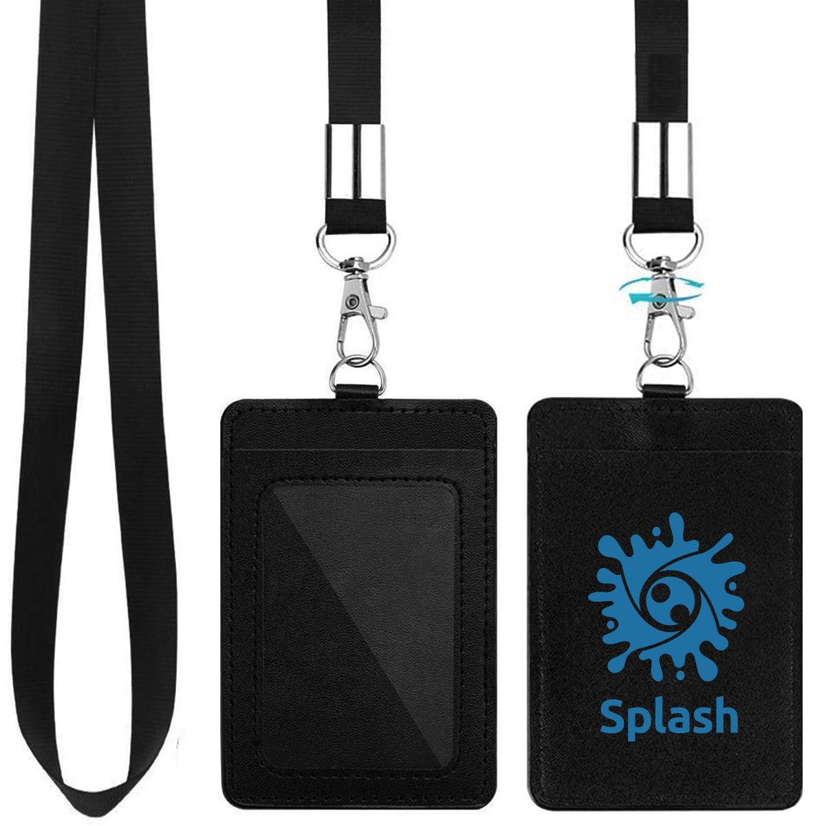 PU Leather ID Badge Card Holder With Lanyard