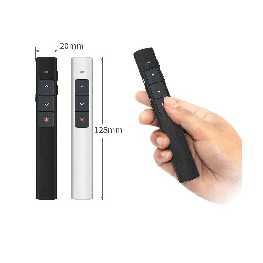Scroll through presentations with the Page Up/ Page Down buttons. Wireless technology: radio frequency. USB receiver fits conveniently into body of presenter. Made of ABS plastic and polymer lithium, Laser Distance: over than 650Ft. control Distance: 164Ft.