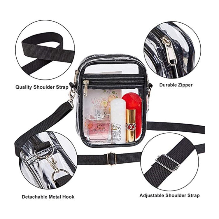 Women's PVC Transparent Shoulder Bag Clear Bag Crossbody Bag W/Strap Stadium Approved Bag